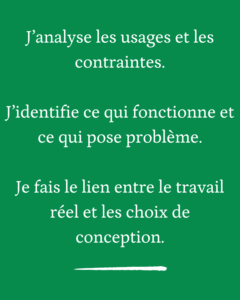Je connecte le terrain aux plans, les usages aux intentions, le réel aux choix.